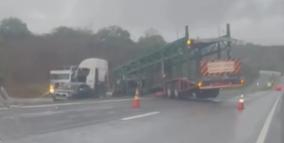 Acidente com caminhão-cegonha interdita parcialmente a BR-230 na entrada de Galante