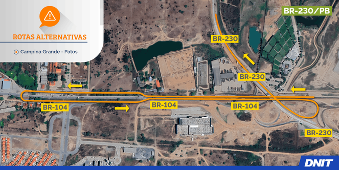 A partir desta terça-feira (20), o Departamento Nacional de Infraestrutura de Transportes (DNIT) informou mudanças no tráfego da BR-230, em Campina Grande. A alteração acontece no km 153,1, próximo ao