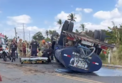 Na manhã desta quarta-feira (21), um caminhão-pipa capotou em um trecho da PB-113, entre os municípios de Puxinanã e Lagoa Seca, no Agreste da Paraíba. Duas pessoas ficaram feridas no