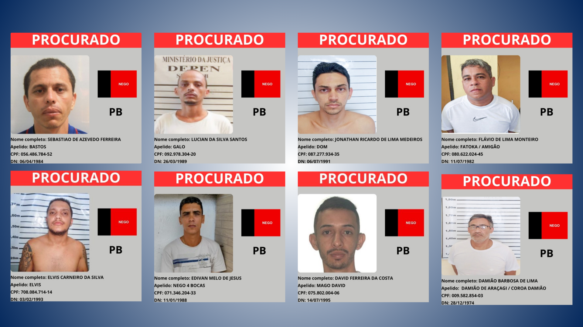 Nesta segunda-feira (09), o Governo Federal divulgou os nomes dos foragidos considerados mais perigosos da Paraíba. A lista foi apresentada durante o lançamento do ‘Projeto Captura’, uma plataforma nacional criada para reunir informações sobre pessoas procuradas pela Justiça em todo o país.