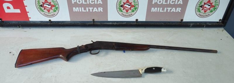 No imóvel, também foram apreendidos uma espingarda calibre .32 e a faca usada na ameaça, ambos indicados pela vítima.